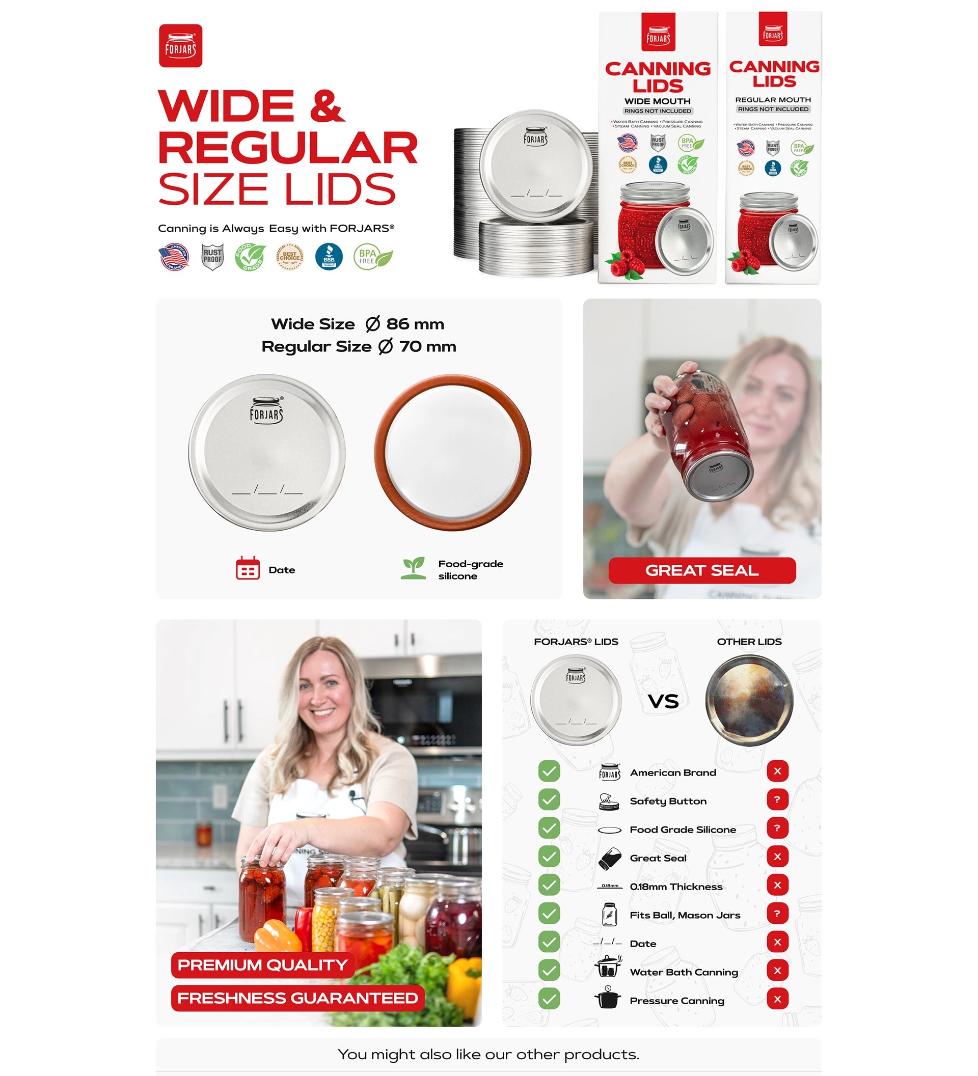 Forjars Canning Lids will hold a tight seal for up to 18 months, so you never have to lose any of the food you have canned. Built for regular and wide mouth canning lids, these airtight canning lids will offer you the best canning experience you’ve ever had. (Just check out all of our reviews below).