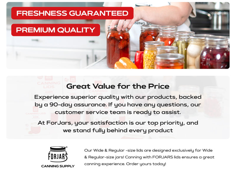 We offer a 90 day guarantee on our products. If your jams and jellies don't seal with our lids - just reach out to our customer support team and we're here for you. Our #1 priority here at Forjars is your happiness. This means we stand by our products 100%, no matter what, no questions asked. Happiness Guaranteed..