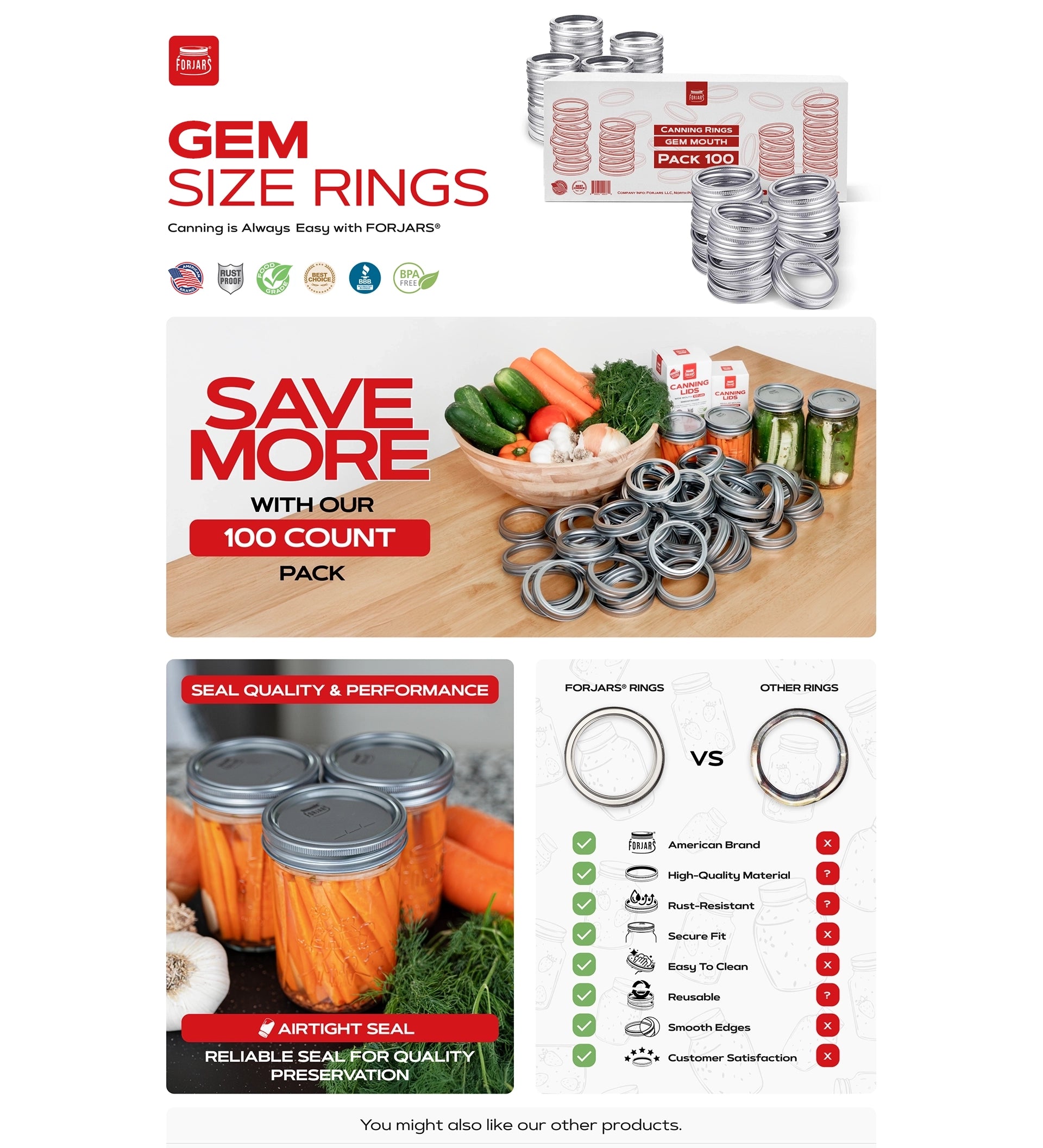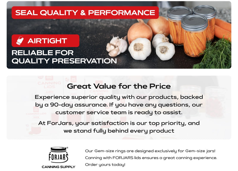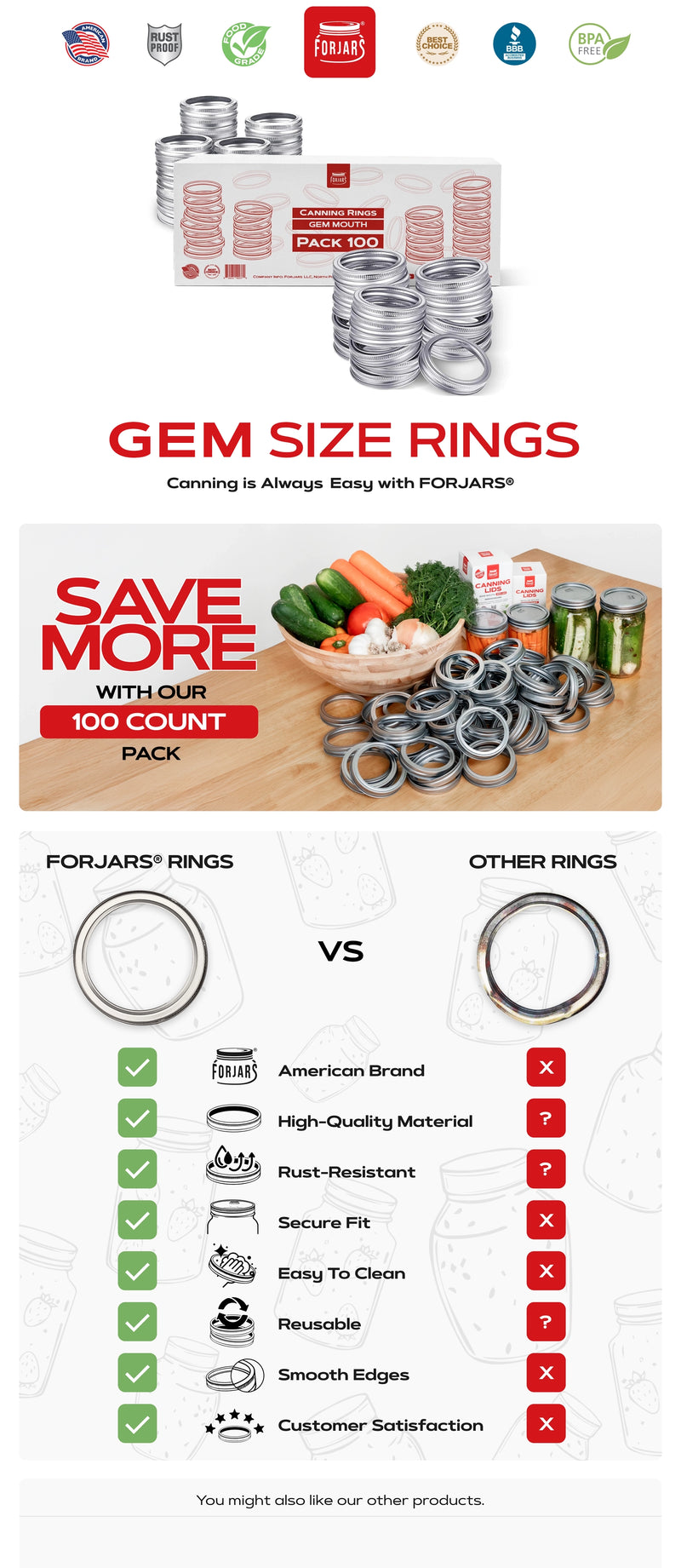 Safe for boiling and pressure cooking, these canning rings will provide a dependable and secure seal for all your canning needs. From salsa, and pickles, to turkey broth, these  Forjars Canning Rings are the affordable alternative you have been looking for all this time. Well, search no more! Order today and discover why these canning rings are recommended by expert canners all over Canada and the USA.